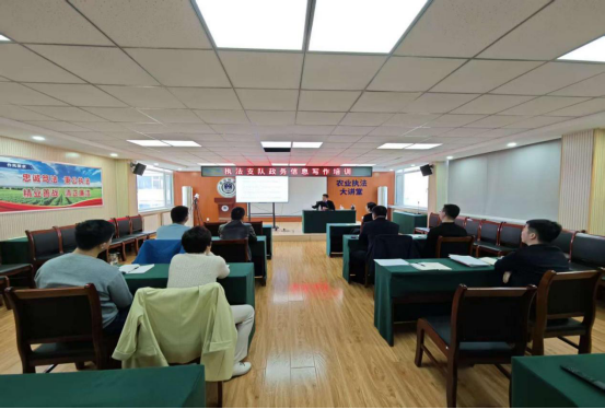 为切实提升干部职工政务信息写作能力,精准掌握信息写作规范与技巧,进一步提高政务信息报送质量与效率,10月31日,农业综合执法支队特邀市政府办公室信息舆情科科长为全体执法人员开展政务信息写作专题培训。