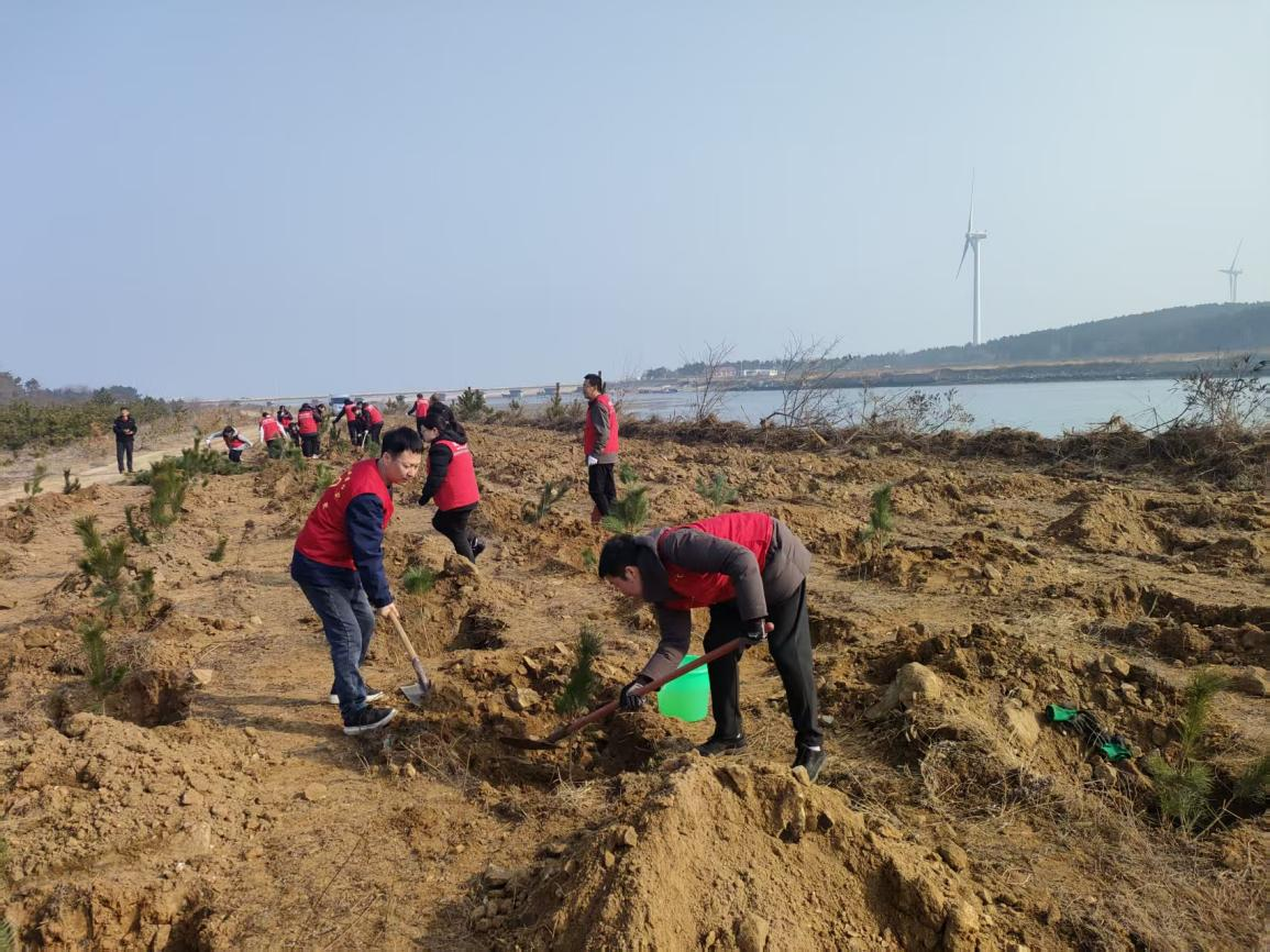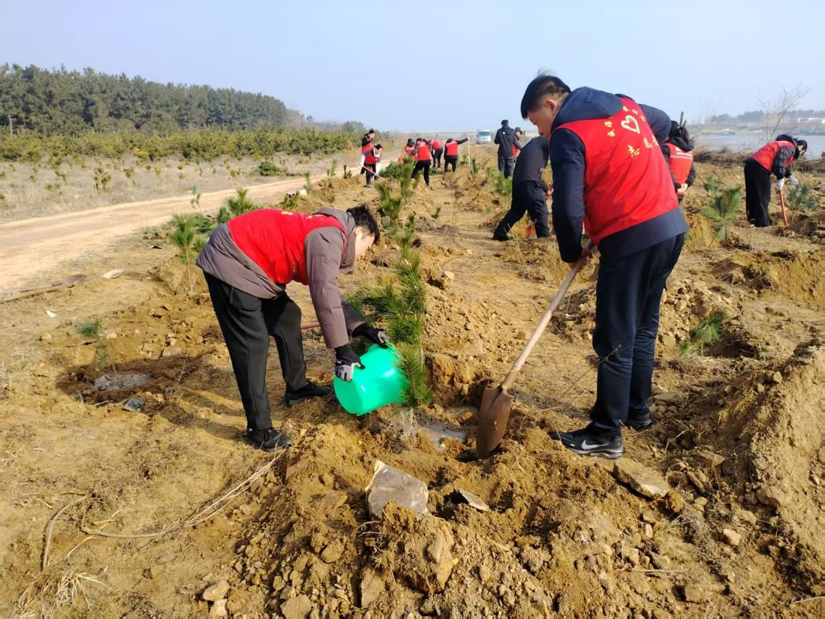 活动现场,大家热情高涨、干劲十足。在专业技术人员的指导下,干部职工们分工协作、配合默契:有的挥锹铲土,有的扶苗填坑,有的提水浇灌,每一道工序都一丝不苟。大家弯腰俯身、挥锄劳作,将一棵棵松树苗稳稳栽入泥土中,原本空旷的土地上,很快便立起了一排排整齐的新绿,在春日暖阳下焕发出勃勃生机。